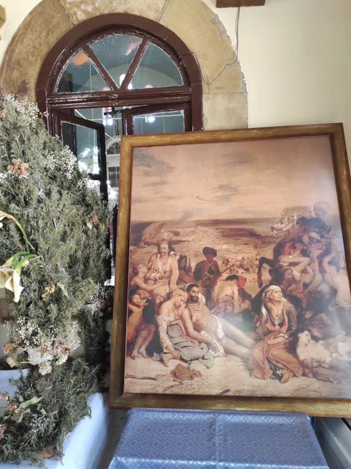 Στην εκκλησία της μονής υπάρχει ο πίνακας που απεικονίζει το έργο του Ντελακρουά/ Φώτο:iefimerida.gr